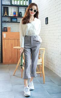 2. 日韩格子裤 衬衫:如果你想要更加正式一些,可以选择一件衬衫搭配日韩格子裤。无论是长袖衬衫还是短袖衬衫,都能与格子裤完美融合,展现出你的职场范儿。